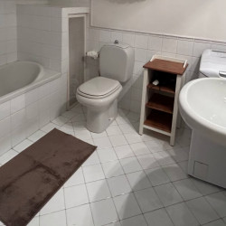 bagno con vasca. Comodo salotto con zona pranzo separata e completo di cucina attrezzata.