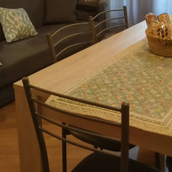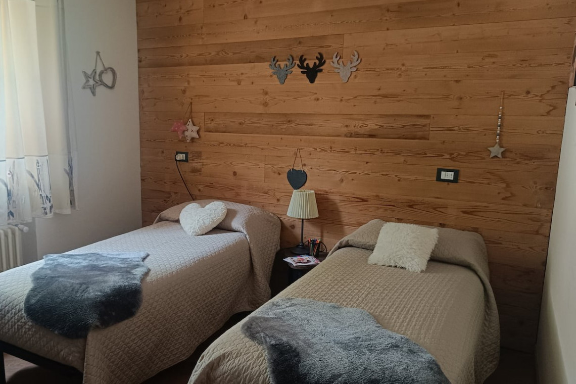 A pochi minuti dalle piste da sci due camere, una matrimoniale e una doppia, un soggiorno con divano letto matrimoniale, tavolo e zona cottura. A disposizione deposito sci e scarponi. è disponibile un posto auto. Saranno forniti asciugamani e teli per il bagno, lenzuola e biancheria per le camere da letto